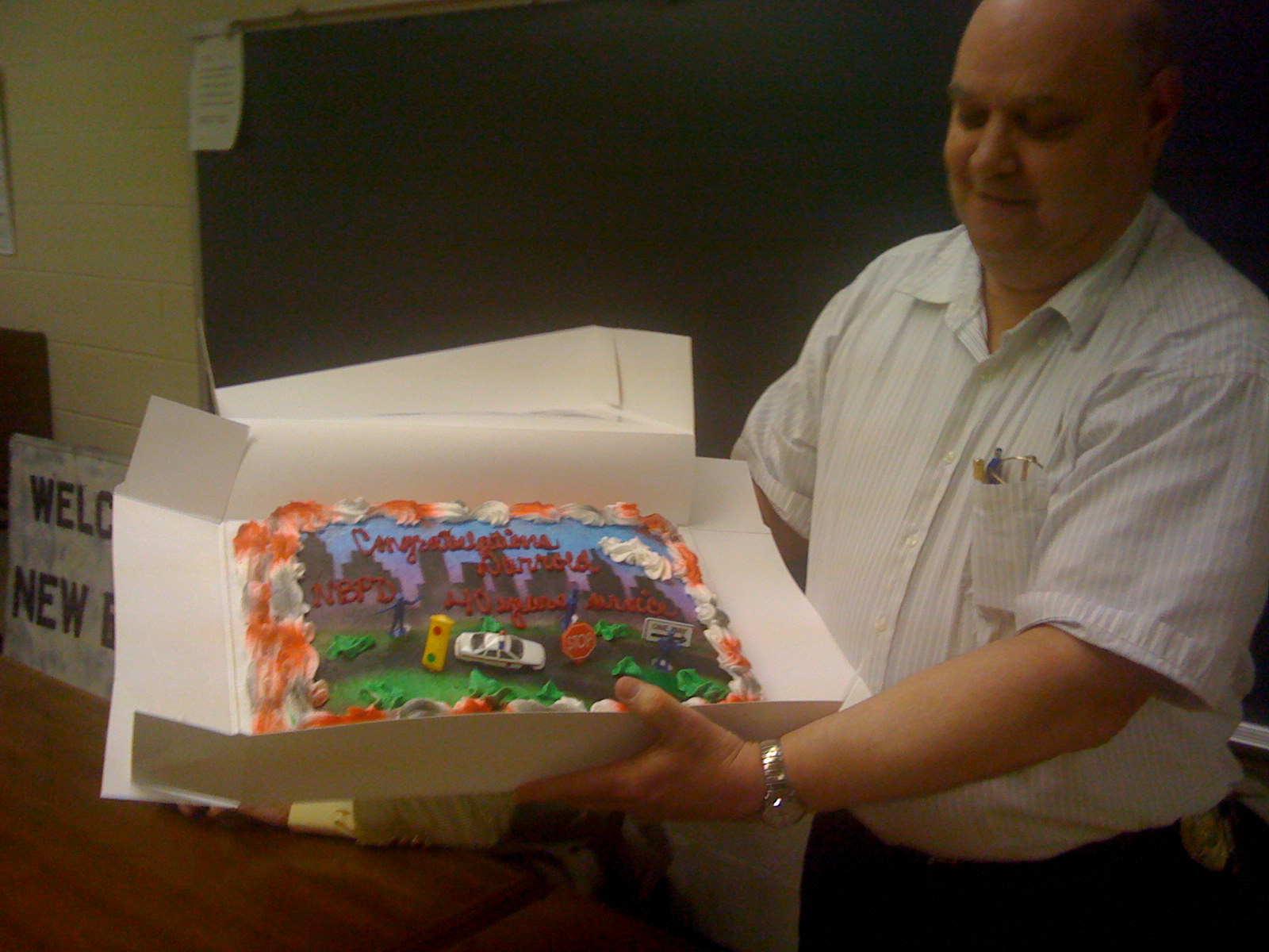 New Boston Police Chief Darrold Clark celebrated 40 years of service to the Village of New Boston on Tuesday, March 16. After that evening’s council meeting, Clark was honored with a cake from the village employees, member of council and Mayor James Warren.