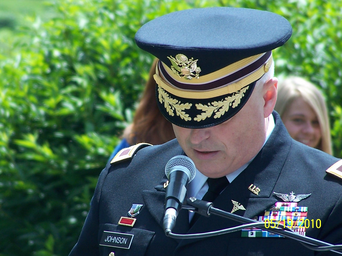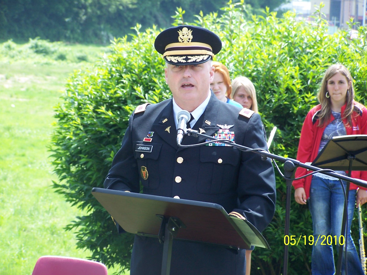 Col. Terry Johnson spoke during the Village of New Boston Memorial Day Ceremony, at Millbrook Park Veteran’s Memorial, on May 20.
